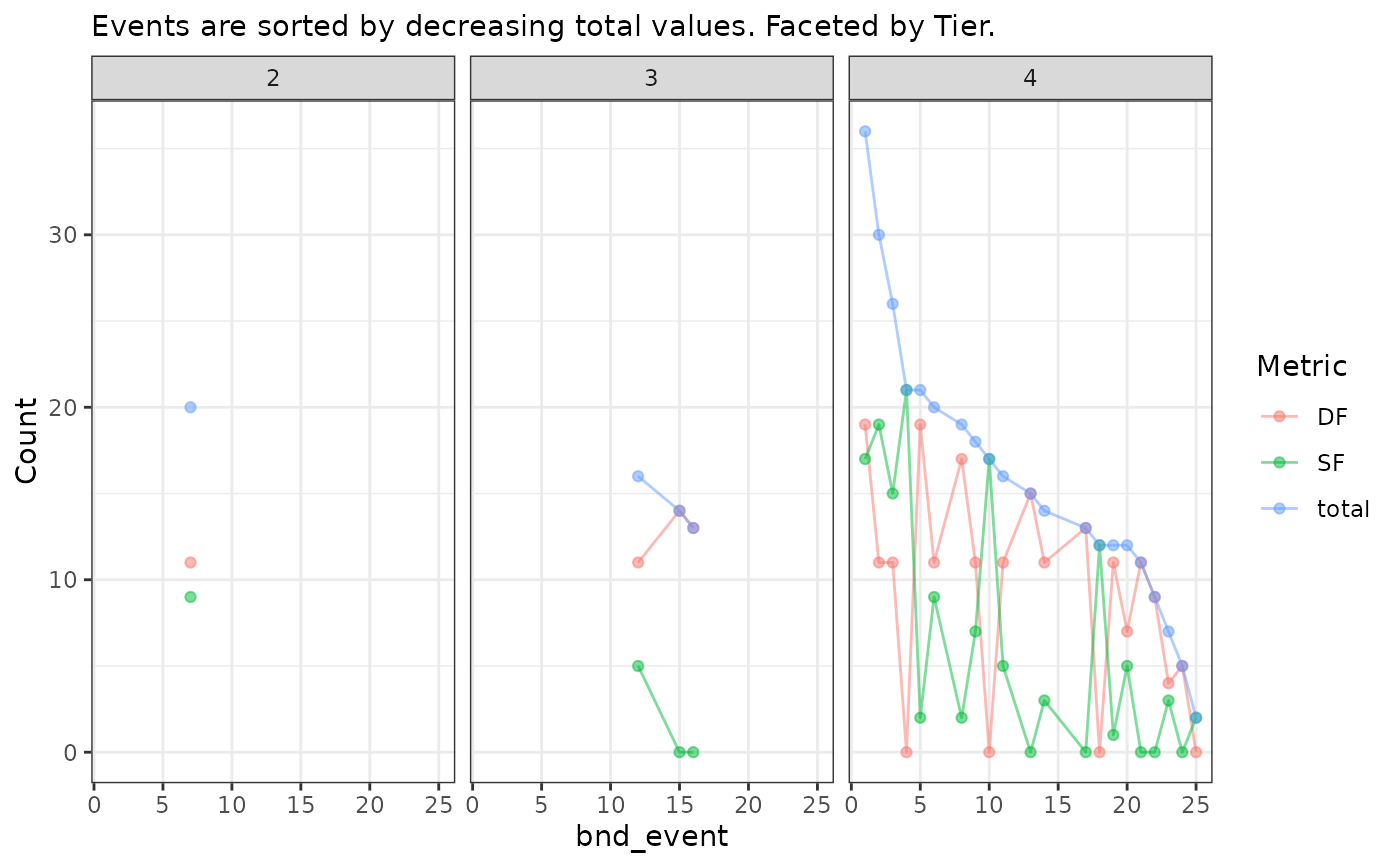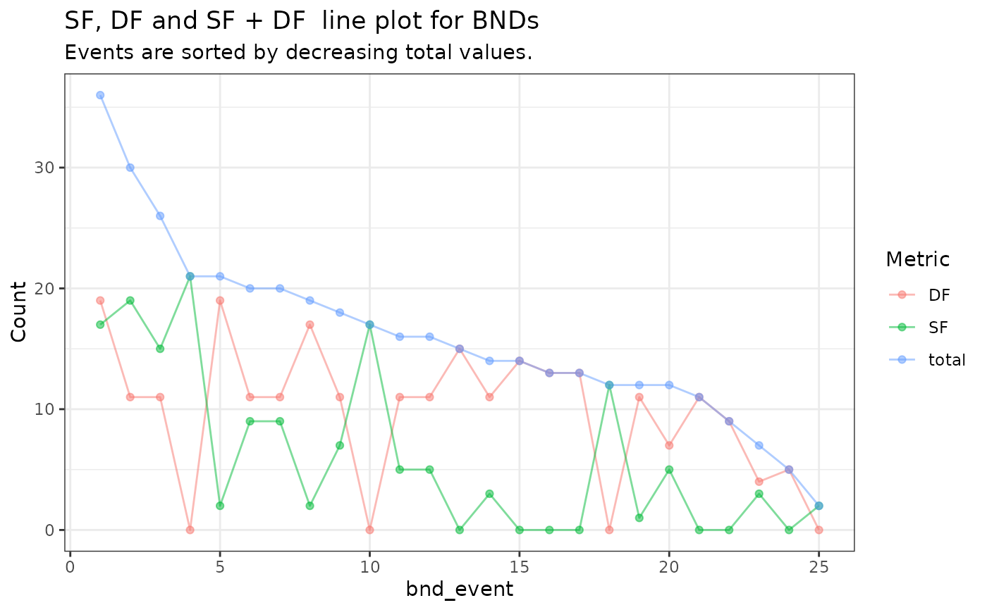 the total fragments (SF+DF) across all BNDs, sorted by total value.
